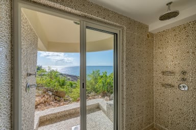 This stunning 5-bedroom cliffside villa is a masterpiece of architectural design, offering unparalleled views of the Caribbean Sea and the neighboring island of Anguilla.