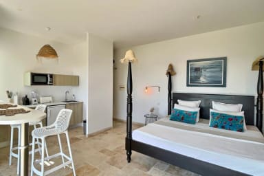 The second suite, accessible via the terrace, offers a private bathroom and its own kitchenette. The layout is thoughtfully designed to offer both comfort and independence.