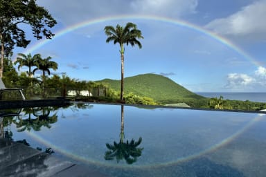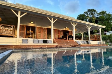 La villa Ti Kawan welcomes you on the heights of Deshaies, in the heart of Basse-Terre, within a preserved natural environment. This Creole-inspired architect-designed home is the result of a project carried out with passion. It combines contemporary elegance, Creole authenticity and a true tropical lifestyle, for holidays dedicated to relaxation and contemplation.