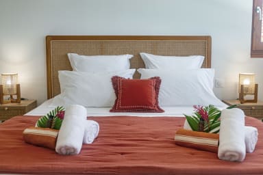 Villa Ti Kawan offers 4 air-conditioned bedrooms, all with en-suite bathrooms and walk-in wardrobes, providing comfort and privacy for everyone.