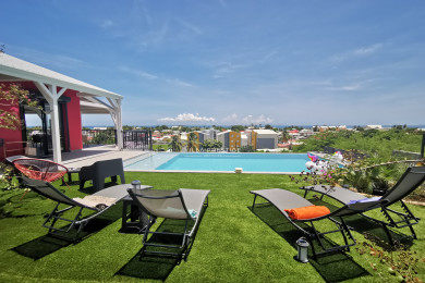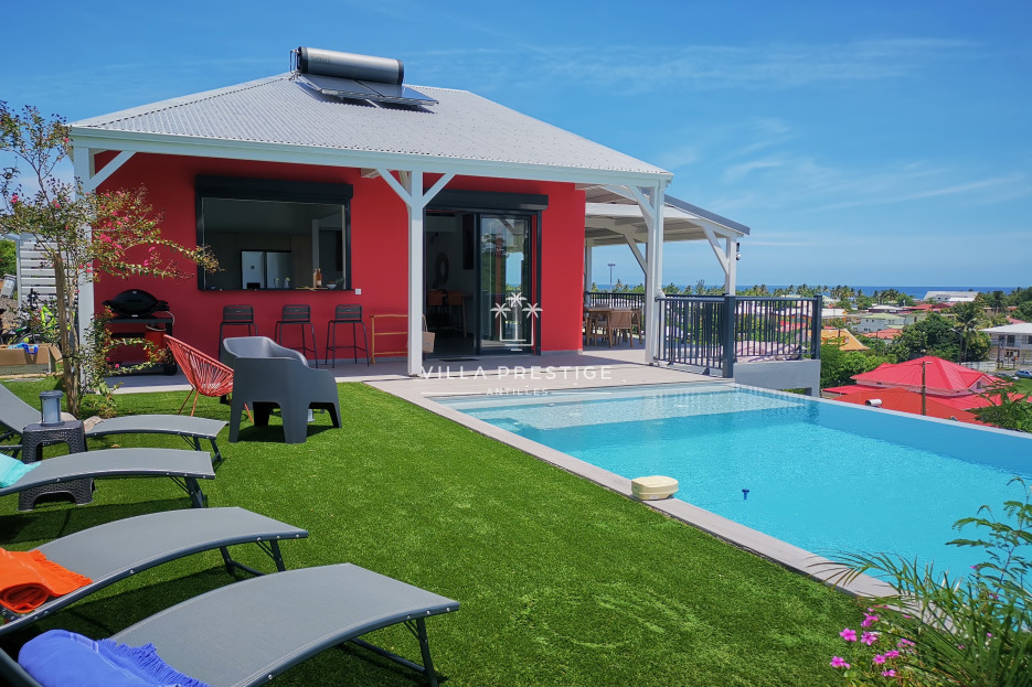 Villa 5 chambres, vue mer, piscine à débordement, proche du centre ville de Sainte-Anne et de ses commerces.