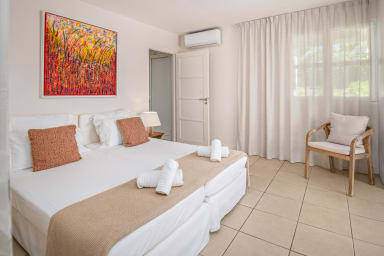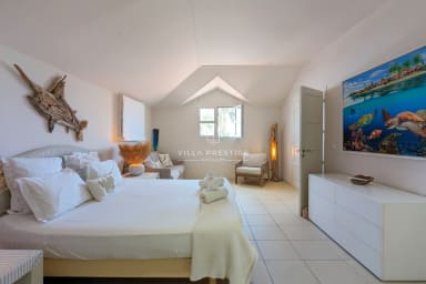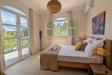 La villa dispose de 5 chambres climatisées avec salle de bain attenante, réparties sur deux niveaux.