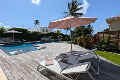 Située à l’extrémité d’une résidence privée et sécurisée, entre le célèbre Golf international et le lagon aux eaux turquoise de Saint-François la villa Carib offre un cadre intimiste et raffiné, avec un accès direct à la mer. À quelques minutes à pied des commerces, restaurants, du casino et du marché local, elle réunit tous les atouts pour des vacances de rêve en Guadeloupe.