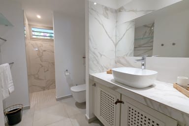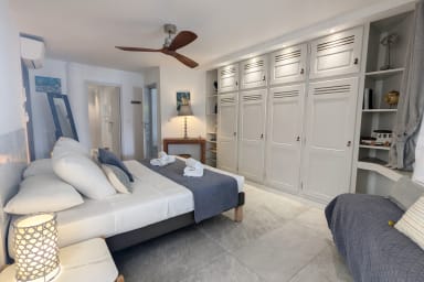 La villa dispose de 4 chambres climatisées avec salle de bain attenante réparties sur deux niveaux: