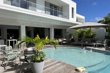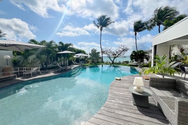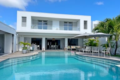 Idéalement située entre le lagon et le golf international de Saint-François, la Villa Delphy allie architecture traditionnelle, rénovation contemporaine et élégance décontractée. Avec ses vastes volumes, son jardin paysager, sa piscine chauffée de 70 m² et son accès direct à la mer, elle est parfaite pour un séjour inoubliable en famille ou entre amis.