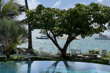 Le jardin soigneusement aménagé s’articule autour d’une grande piscine chauffée au sel (12m7m1.50m, sécurisée par alarme immergée). Vous y trouverez des transats, une douche extérieure, un BBQ gaz, une citerne d’eau, un générateur et un espace lounge face à la mer. Des équipements de loisirs sont à disposition : 3 kayaks, 2 vélos, palmes/masques/tubas.