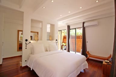 La villa comprend 4 chambres climatisées avec salle d’eau attenante et WC, toutes avec vue sur la mer ou la végétation environnante :