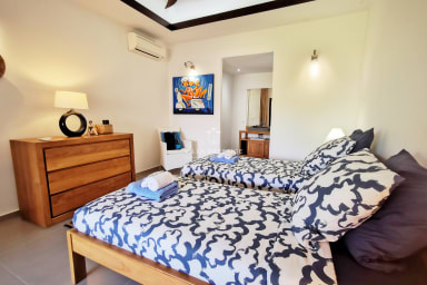 La villa dispose de 3 chambres climatisées avec salles d’eau attenantes et WC privatifs :