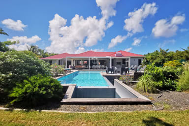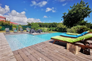Située dans une résidence sécurisée de standing proche des plages, du golf et du centre de Saint-François, la Villa Rubis est une maison d’architecte moderne, décorée avec goût et pensée pour des vacances confortables en Guadeloupe. Sa vue dégagée sur la nature, sa piscine à débordement et sa terrasse protégée par une pergola climatique en font une adresse idéale pour un séjour au calme à proximité de tout.
