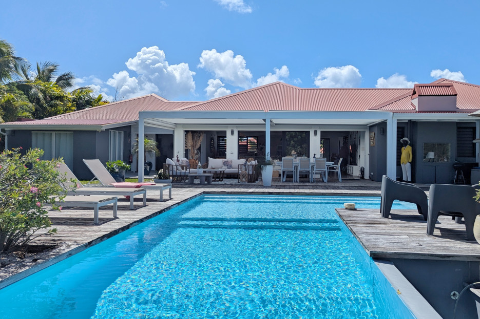 Située dans une résidence sécurisée de standing proche des plages, du golf et du centre de Saint-François, la Villa Rubis est une maison d’architecte moderne, décorée avec goût et pensée pour des vacances confortables en Guadeloupe. Sa vue dégagée sur la nature, sa piscine à débordement et sa terrasse protégée par une pergola climatique en font une adresse idéale pour un séjour au calme à proximité de tout.