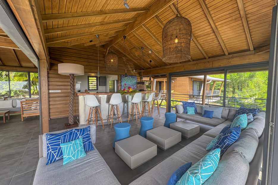 La villa invite au partage avec une double cuisine ouverte sur l’extérieur, un grand salon, une table ronde conviviale et une multitude d’espaces pour se détendre, lire, jouer ou prendre l’apéritif. Le rooftop panoramique, parfait pour l’apéritif, offre une vue splendide sur les montagnes de Basse-Terre.