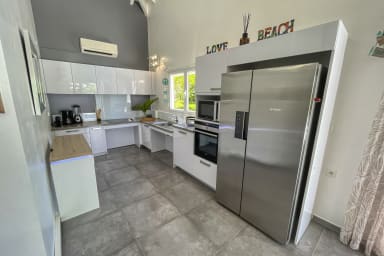 Dans la seconde partie, une cuisine séparée entièrement équipée, climatisée, avec espace salle à manger, vous permettra de partager vos repas en toute convivialité.