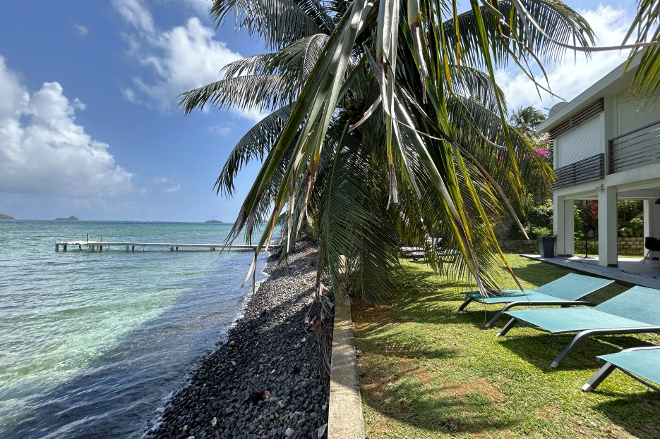 Un ponton semi privé permet un accès direct à la mer, parfait pour les baignades, sorties en kayak, ou les excursions vers les célèbres Fonds Blancs et la Baignoire de Joséphine. La plage de galets en contrebas ajoute une touche d’authenticité à cette adresse unique.
