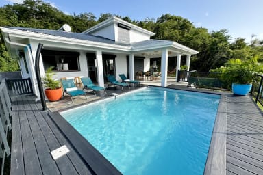 Dans un environnement résidentiel paisible du Diamant, la Villa Rocher Bleu est une élégante propriété contemporaine construite en 2022, entourée d’un jardin tropical luxuriant. Idéale pour un séjour en famille ou entre amis, elle allie confort moderne, intimité et proximité des commodités, à seulement 5 minutes du bourg du Diamant et 30 minutes de l’aéroport Aimé Césaire.