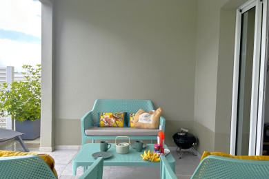 • Deux terrasses aménagées : l’une vue mer à l’étage, l’autre en jardin au niveau de la piscine