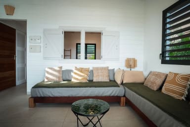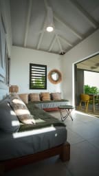 La Galanterie II est composée d'une terrasse couverte, un séjour, une chambre à coucher climatisée avec salle de bain attenante ainsi qu'une cuisine très fonctionnelle ouverte sur la terrasse.