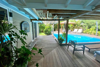 Au cœur d'un écrin de verdure à moins de 5 minutes en voiture de la plage des Raisins Clairs, cette superbe villa de charme offre une atmosphère zen et apaisante. Avec son architecture ouverte, son jardin luxuriant et ses espaces de vie conviviaux, la villa Aloha est parfaite pour des vacances reposantes au cœur des tropiques.