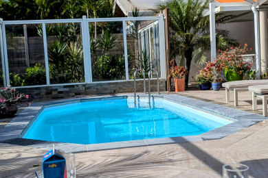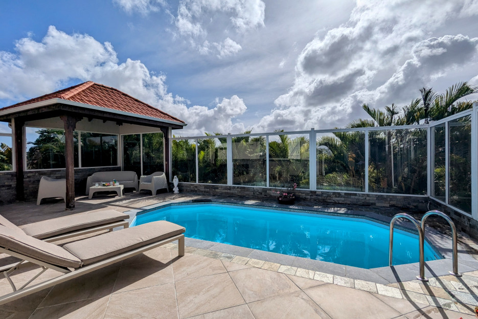 La villa Sun bénéficie d’un emplacement privilégié entre Sainte-Luce, Rivière-Salée et Le Diamant, à seulement 14,9 km de l’aéroport international Aimé Césaire. Édifiée sur un terrain de 900 m², cette villa avec piscine offre un cadre verdoyant et une vue apaisante sur la nature environnante.