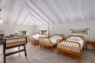 Pour les loisirs, la villa met à disposition différents équipements : table de ping-pong, baby-foot..