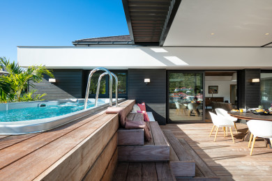 La terrasse extérieure couverte abrite une table à manger pour 6 convives ainsi qu’un agréable salon d’extérieur, idéal pour profiter de la douceur des soirées antillaises. Un jacuzzi chauffé complète cet espace de détente et vous invite à un moment de relaxation totale avec, en toile de fond, les lumières scintillantes du port de Gustavia.