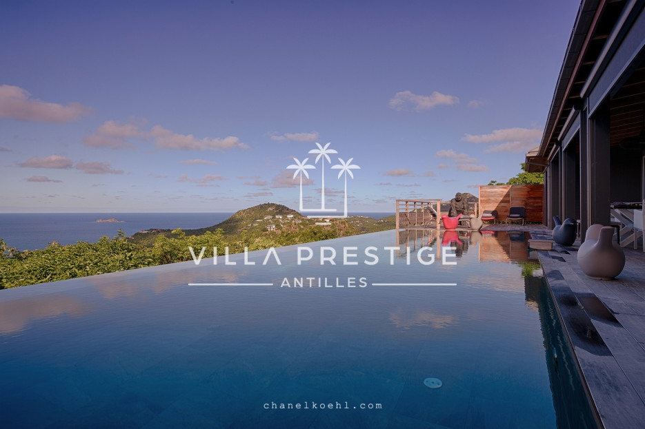 Vous pourrez admirer les beaux couchers de soleil depuis la belle piscine miroir de 15 mètres et un salon extérieur lounge et des transats sont disposés sur la terrasse pour vous prélasser et apprécier le doux rythme des Antilles.