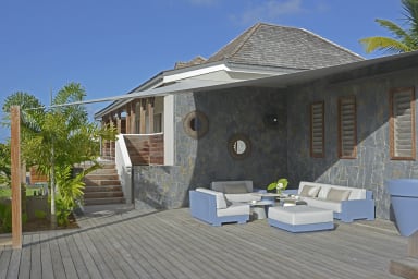 La piscine à débordement fait face à l’océan et domine la baie, offrant un point de vue inoubliable sur le lagon et la nature environnante. La vaste terrasse abrite un salon extérieur et des chaises longues parfaits pour savourer la douceur de vivre typique de l’île. Comme indiqué précédemment, une deuxième piscine est réservée aux chambres du niveau supérieur. La proximité des plages, le cadre du domaine et les prestations proposées font de la villa Lagon Bleu un endroit idéal pour un séjour convivial et inoubliable à St Barths!