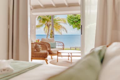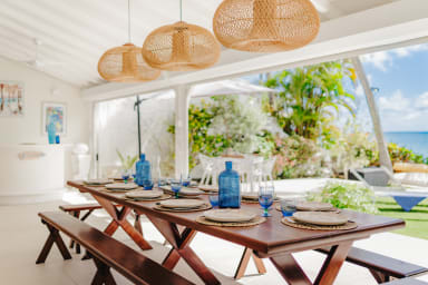 Face au lagon, la villa offre un cadre extérieur exceptionnel. Des équipements sont mis à disposition pour les sportifs : vous profiterez d'escapade en kayac (2 bi-places, 1 mono place) ou en paddle. Avec la plage pour jardin, la villa Cap Caraïbes promet des vacances exceptionnelles.