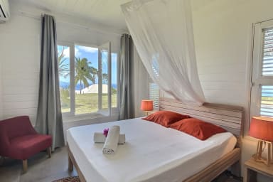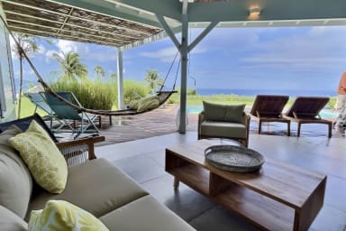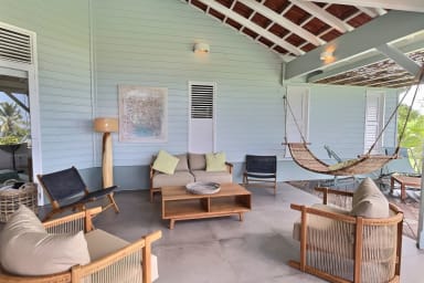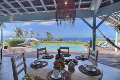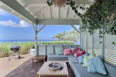 Le carbet, équipé d’un salon extérieur, d’un hamac et d’un barbecue, est parfait pour vos moments conviviaux au coucher du soleil. Une pergola ombragée et des transats vous offrent des instants de repos au calme, entre ciel, mer et végétation luxuriante.