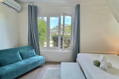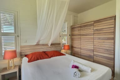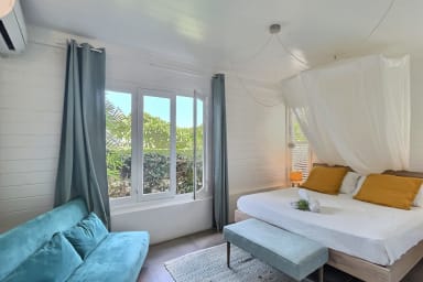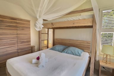 • Lit queen size (160 x 200 cm) avec moustiquaire