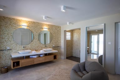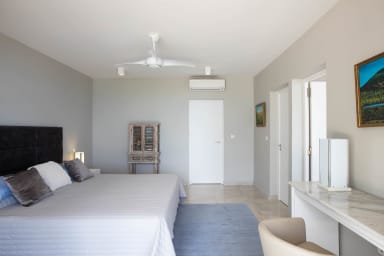 La villa comprend 4 chambres, chacune avec sa propre salle de bains, ce qui assure le confort et l'intimité de tous les invités. Le salon spacieux et la cuisine avec son coin petit-déjeuner s'ouvrent sur la terrasse de la piscine, créant ainsi un lien harmonieux entre l'intérieur et l'extérieur.