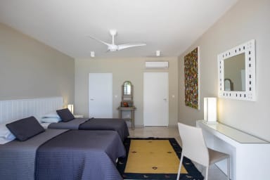 La villa comprend 4 chambres, chacune avec sa propre salle de bains, ce qui assure le confort et l'intimité de tous les invités. Le salon spacieux et la cuisine avec son coin petit-déjeuner s'ouvrent sur la terrasse de la piscine, créant ainsi un lien harmonieux entre l'intérieur et l'extérieur.