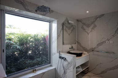 Trois des chambres offrent une vue captivante sur l'océan, vous permettant de vous réveiller avec la beauté de la mer des Caraïbes. La quatrième chambre donne sur le jardin luxuriant, offrant une atmosphère paisible.
