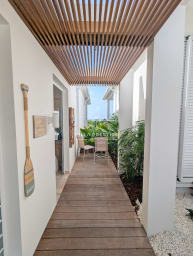 Chaque villa dispose de sa terrasse privative avec coin repas et espace chill faisant face à la petite piscine privative.