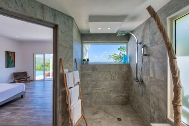 Bienvenue à la Villa Turquoze, un havre moderne et contemporain offrant une vue imprenable sur la mer turquoise et les îles de Pinel et Tintamarre. Cette luxueuse propriété dispose de quatre chambres et de quatre salles de bains, ce qui vous offre un grand espace et un grand confort pour votre séjour.