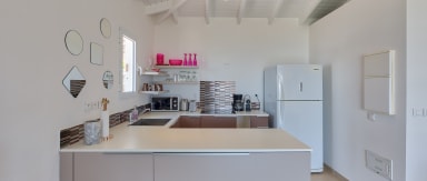 Si vous souhaitez un logement plus grand, la Villa Pinel peut être louée avec la Villa Tintamarre, créant ainsi un logement de deux chambres. Cette option offre plus d'espace et d'intimité, ce qui la rend idéale pour les couples voyageant ensemble ou les petits groupes.