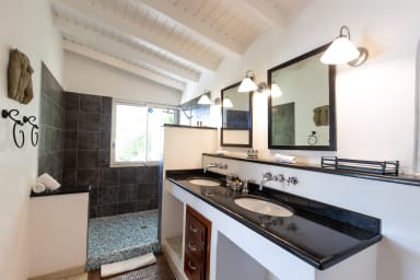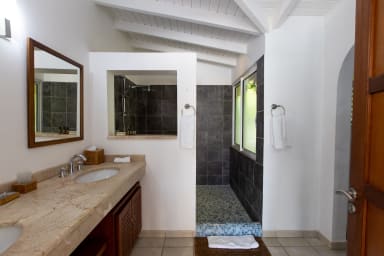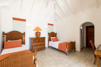 La villa dispose de 4 chambres à coucher, chacune avec sa propre salle de bains et l'air conditionné. Toutes les chambres s'ouvrent sur la terrasse de la piscine. Les chambres sont de taille et de niveau égaux, ce qui garantit le confort et l'intimité de chacun. La plupart des chambres disposent d'un lit king-size, tandis qu'une chambre dispose de deux lits simples.
