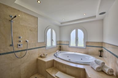 Avec deux magnifiques piscines chauffées, idéales pour des moments de détente ou des longueurs revigorantes, la villa se distingue également par un court de tennis éclairé à la perfection et une salle de sport entièrement équipée, pour combiner bien-être et plaisir.