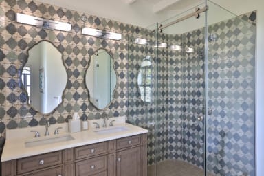 À l’intérieur, la villa allie confort et raffinement : une cuisine entièrement équipée idéale pour cuisiner en amoureux, quatre chambres spacieuses avec salle de bains privative – dont une suite parentale avec lit king-size à baldaquin, salle de bains généreuse et dressing séparé.