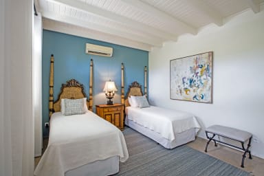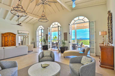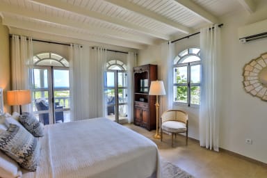 Cette propriété exclusive s’étend sur plus de 2,5 hectares de jardins tropicaux parfaitement entretenus, et surplombe les eaux cristallines de Baie aux Prunes. Depuis la villa, le regard se perd entre les nuances de bleu de la mer des Caraïbes, de l’océan Atlantique, et les silhouettes lointaines de Saba et Anguilla.