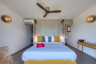 À l'intérieur, les espaces sont décorés avec goût, entièrement climatisés et conçus pour maximiser le flux de la brise océanique. Toutes les chambres sont équipées de climatiseur, ventilateur et téléviseur, pour un confort optimal. Notez également que la sixième chambre est accessible par l'extérieur, située après la piscine, ce qui lui confère un peu plus d'intimité et d'écart des espaces communs.