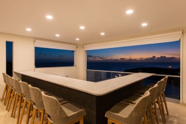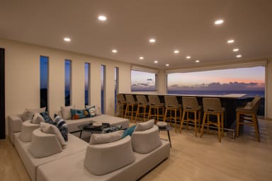 Le coin salon extérieur avec son canapé confortable est l'endroit idéal pour se détendre. Vous pouvez également divertir vos invités en cuisinant dans la cuisine extérieure bien équipée pendant qu'ils sirotent un délicieux cocktail au bar extérieur avec vue sur l'océan.