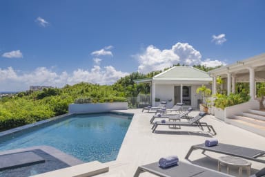 Les pièces à vivre intérieures communiquent aisément avec la vaste et élégante terrasse meublée qui est le préambule à la superbe piscine extérieure. La piscine est équipée d'un petit bassin avec une table, ce qui permet aux clients de passer une journée relaxante en profitant du soleil chaud des Caraïbes et de la vue qu'offre son cadre magnifique.