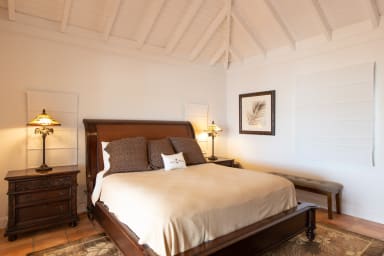 L'âme de cette villa de Saint-Martin est celle d'une maison de plantation des Antilles. Elle comporte de magnifiques meubles Tommy Bahama modernisés par une décoration intérieure contemporaine sélectionnée par Bleu de Perse, spécialiste de la décoration intérieure.