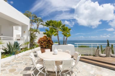 Située sur la plage de Baie Rouge, Villa L'Oasis, à Saint-Martin, est un chef-d'œuvre unique en son genre, qui allie harmonieusement l'allure captivante du design marocain à l'élégance intemporelle de l'architecture grecque.