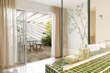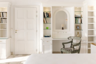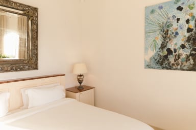 La villa dispose également d'un studio privé à l'entrée de la propriété, qui constitue un lieu de détente supplémentaire pour les invités ou le personnel. Le studio est aménagé avec goût et offre un espace de vie confortable.