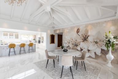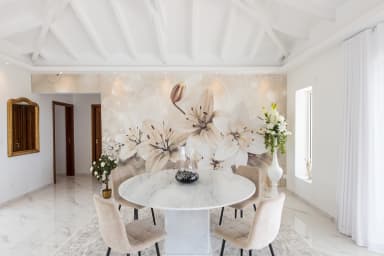 L'intérieur de la Villa Fleurs de Lys est un mélange harmonieux de luxe français classique et d'élégance contemporaine, orné d'œuvres d'art modernes qui rehaussent son ambiance sophistiquée. Le décor comprend des équipements de qualité et des détails raffinés, créant une atmosphère d'opulence et de sophistication.