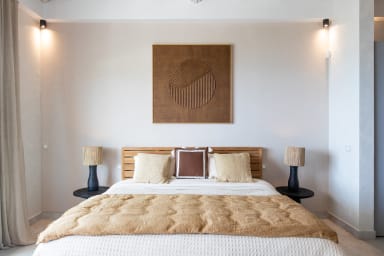 La villa s'étend sur deux niveaux, chacun conçu pour maximiser la détente et le bien-être de ses occupants. Le niveau principal, qui constitue le cœur de la maison, abrite un espace de vie spacieux et lumineux. Les grandes baies vitrées laissent entrer une lumière naturelle abondante, révélant une décoration à la fois élégante et contemporaine. Le salon et la salle à manger s’ouvrent sur une large terrasse, parfaite pour des moments de convivialité, que ce soit autour d’un repas ou lors d’une pause détente en admirant la vue imprenable sur l’horizon.