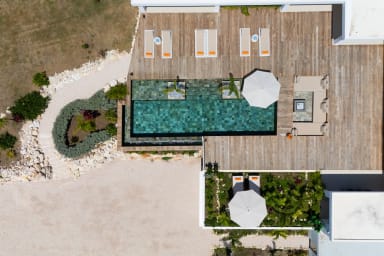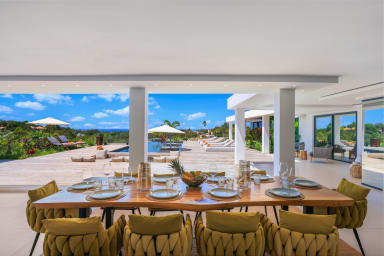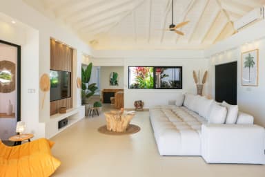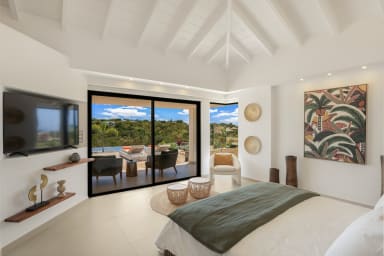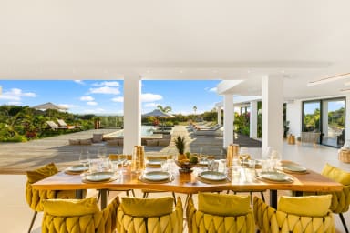 Dès votre arrivée, vous serez charmé par les volumes généreux et les équipements haut de gamme pensés pour votre bien-être. Entièrement climatisée, la villa dispose d’un vaste salon baigné de lumière, d’une cuisine équipée de toutes les commodités modernes, et d’une terrasse spacieuse avec un bar extérieur—idéal pour des apéritifs au coucher du soleil. La piscine chauffée, entourée de tables et de parasols, est une véritable invitation à la détente face à l’horizon. Veuillez noter, qu'elle est chauffée du 15 octobre au 15 avril, en dehors de cette période le chauffage de la piscine est en option, moyennant un supplément de $350 par semaine.