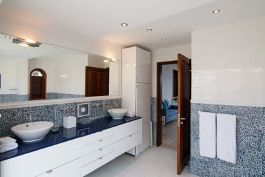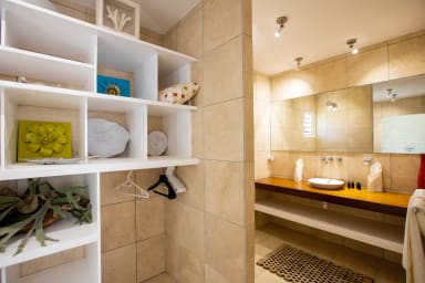 Chacune des chambres de la villa est accompagnée de sa propre salle de bains, sept d'entre elles disposant également d'une douche extérieure. Ce mélange d'espaces de vie intérieurs et extérieurs permet aux hôtes de s'immerger totalement dans la beauté des environs.