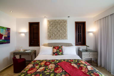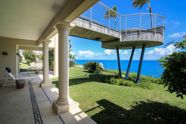 Perchée sur une falaise, la Villa Mes Amis offre des vues incroyables sur le coucher de soleil et l'océan. La propriété dispose de deux piscines chauffées, de plusieurs terrasses avec des vues à couper le souffle, d'un jacuzzi au sommet de la falaise et d'une salle de remise en forme, ce qui permet aux hôtes de disposer de nombreuses options pour se détendre et s'amuser.